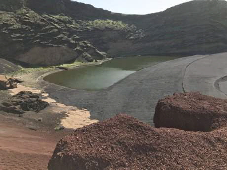 •Lago Verde, die grüne Lagune im Süden Lanzarotes